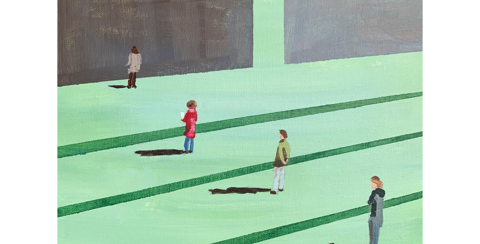 Elise Mendelle aims at visually describing a thought, feeling or emotion so the viewer can explore and anticipate what comes next. Her popular social distancing series is a contemporary commentary that captures our new normal, when two metres apart is the way we can safely interact. The series explores the isolation we are experiencing in our current times, but are presented in an eye-catching, colourful way to add hope to the alienation and separation we are all feeling right now.